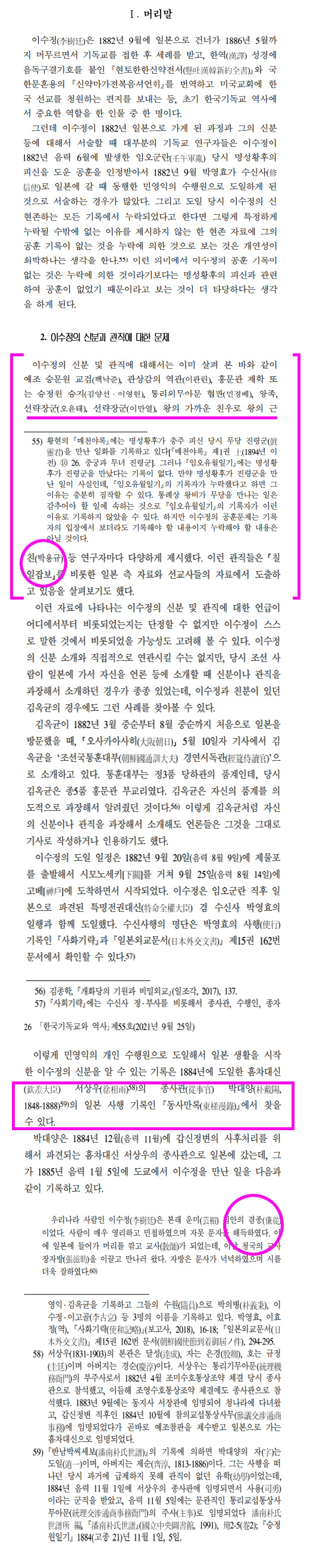 이수정의 신분을 "왕족'으로 소개하고 있는 데