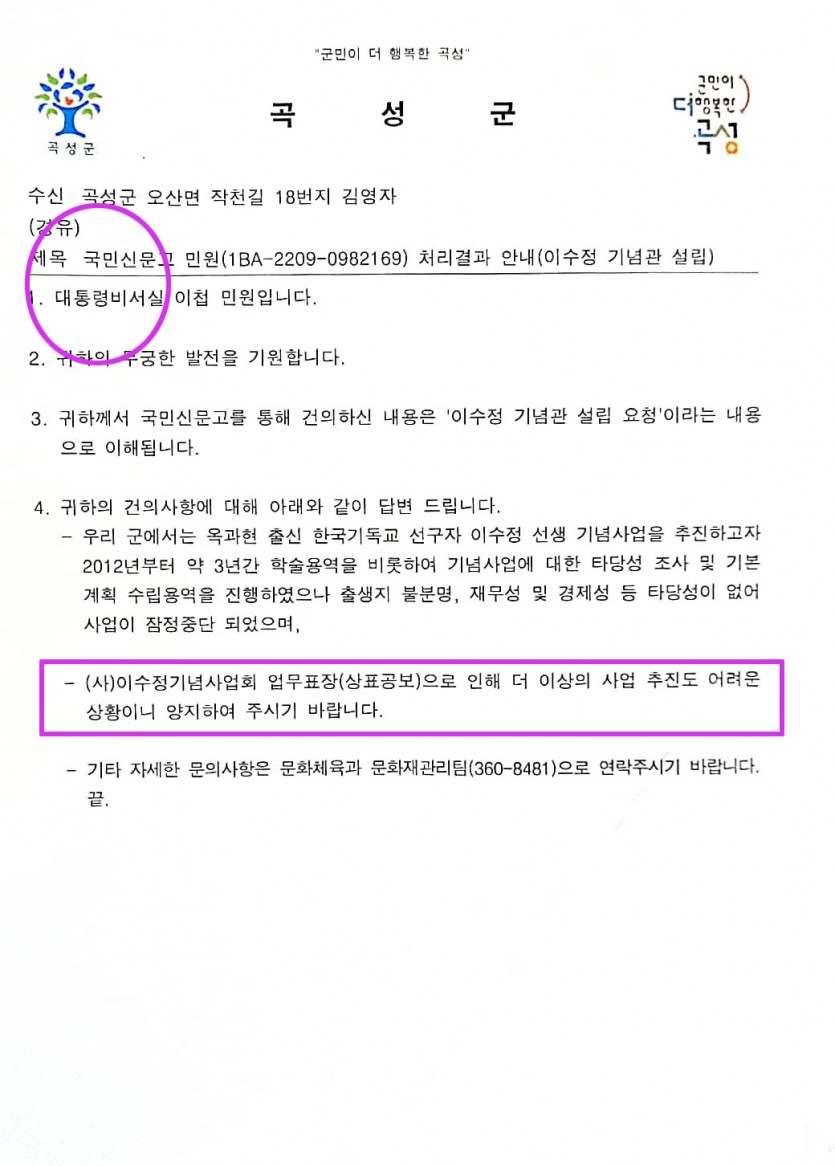 “이수정 생가터를 기부한다.”라고 확약했다.