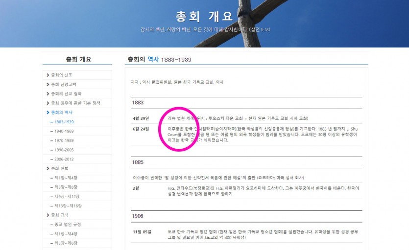 재일대한기독교회 이수정 역사 자료(2021년도)