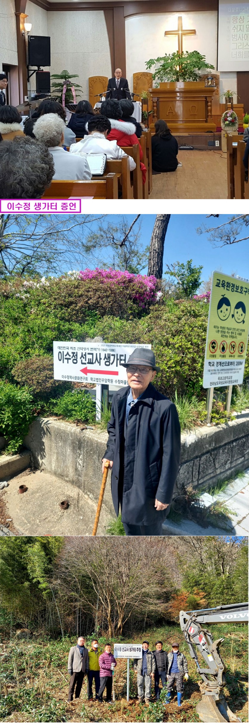증언을 근거로 지적도를 조사했으며, 곡성시찰회 목사님들이 '이수정 공간 스토리 텔링'으로