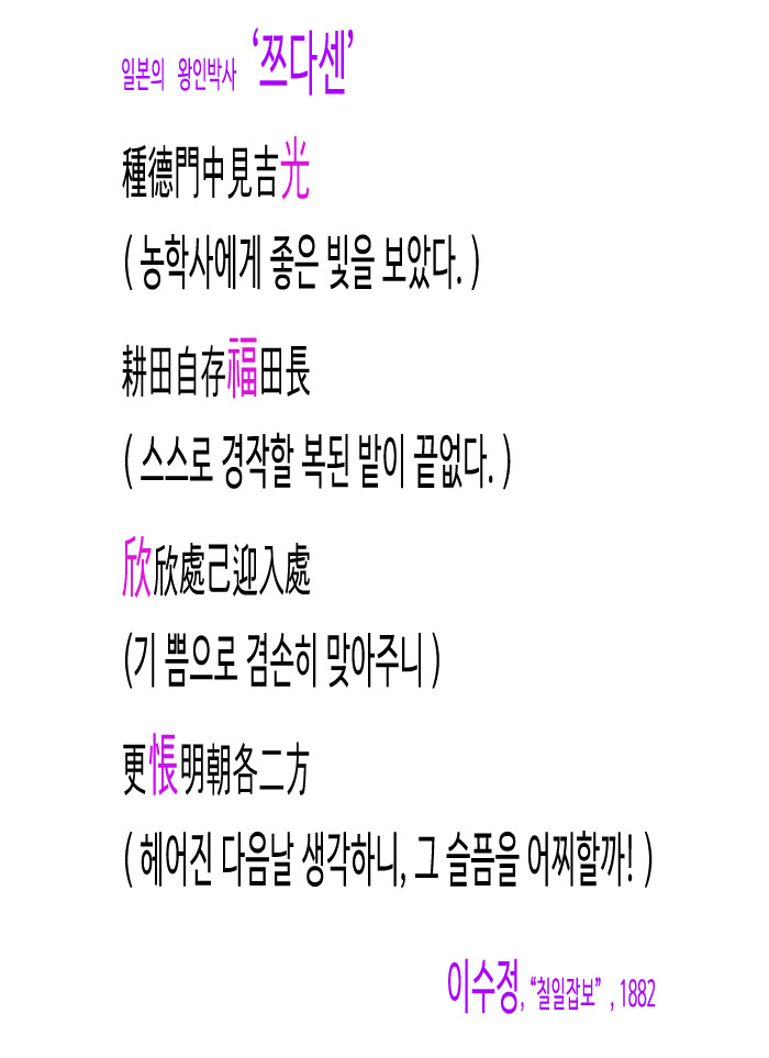 이후 이수정은 답례로 다음과 같은 한시를 지어