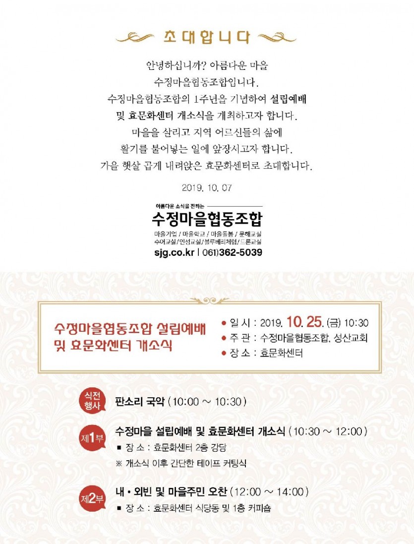 수정마을 개소식 안내 페이지 정보 작성자 최고관리자 작성일19-10-12 20:16 조회1,764회 댓글0건 관련링크 이전글 다음글 목록 답변 글쓰기 본문 . SNS공유 댓글목록 등록된 댓글이 없습니다. 이전글 다음글 목록 답변 글쓰기