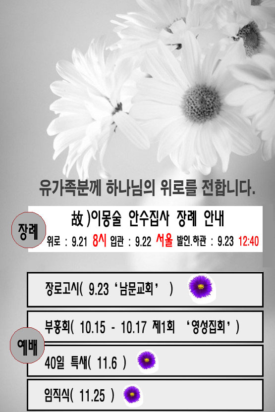하나님의 위로 페이지 정보 작성자 최고관리자 작성일23-09-16 13:05 조회1,022회 댓글0건 관련링크 이전글 다음글 목록 글쓰기 본문 *유가족께 <하나님의 위로>를 전합니다. 주일 날 뵙겠습니다. 샬롬. SNS공유 댓글목록 등록된 댓글이 없습니다. 이전글 다음글 목록 글쓰기