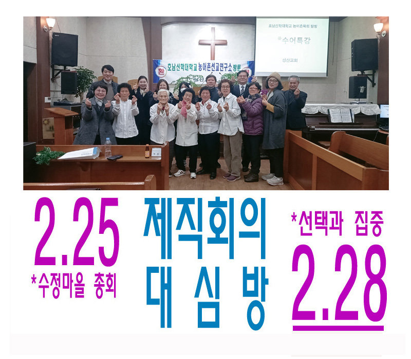 공지 | 2.28 대심방 페이지 정보 작성자 최고관리자 작성일24-02-24 15:40 조회1,113회 댓글0건 관련링크 이전글 다음글 목록 글쓰기 본문 제직회의 후 대심방 계획합니다. 일정 수립 후 구역별로 준비하여 주시면 감사하겠습니다. SNS공유 댓글목록 등록된 댓글이 없습니다. 이전글 다음글 목록 글쓰기