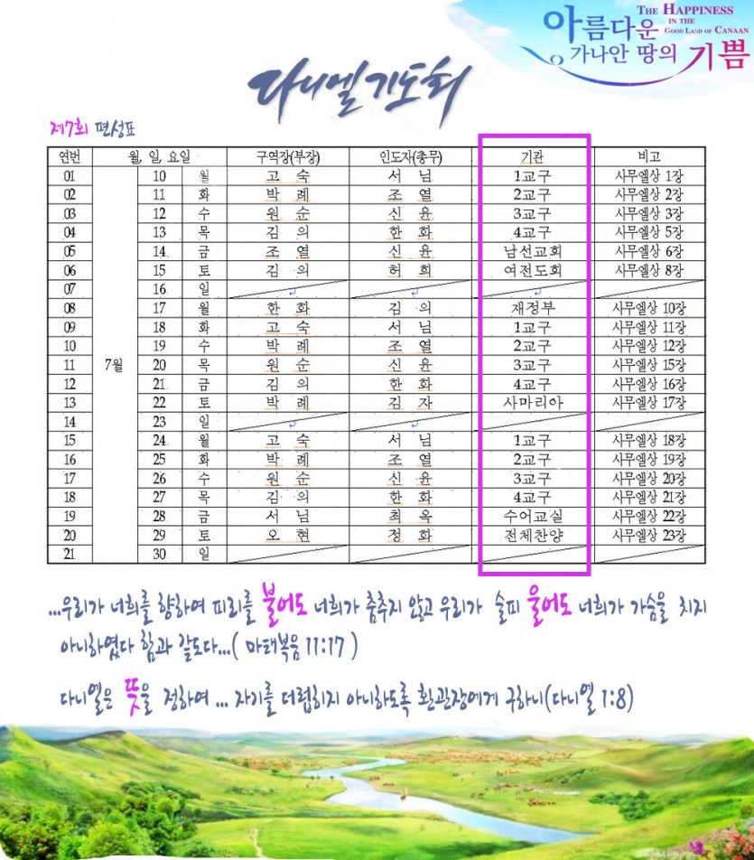 세이레 편성표(7회) 페이지 정보 작성자 최고관리자 작성일23-07-15 16:25 조회887회 댓글0건 관련링크 이전글 다음글 목록 글쓰기 본문 지난 주 이어 21일 기도회 실시합니다. 편성표 안내합니다. SNS공유 댓글목록 등록된 댓글이 없습니다. 이전글 다음글 목록 글쓰기