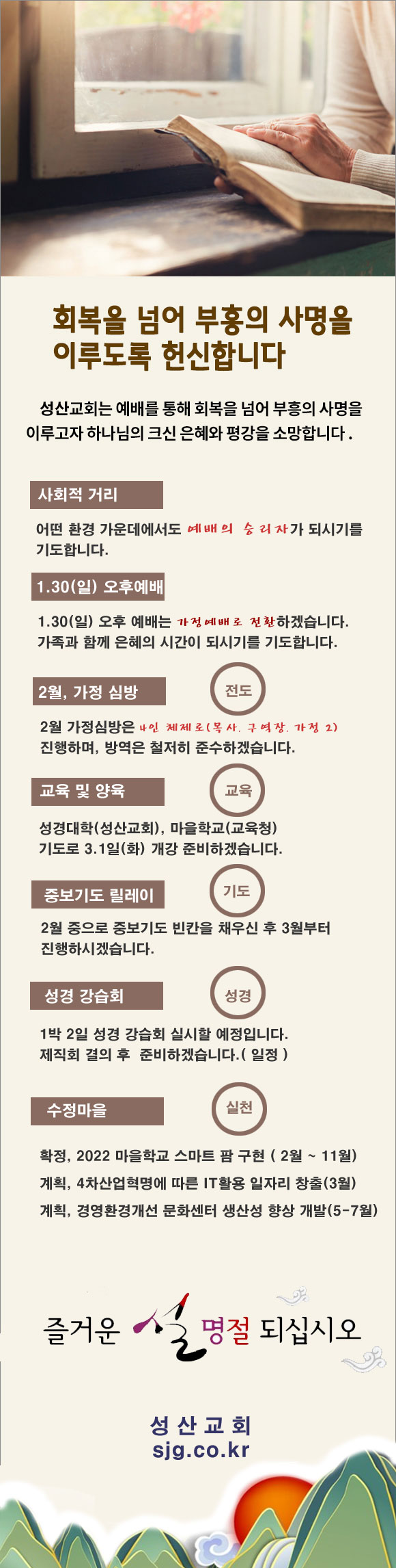 회복을 넘어 부흥의 사명 페이지 정보 작성자 최고관리자 작성일22-01-29 21:13 조회1,318회 댓글0건 관련링크 이전글 다음글 목록 글쓰기 본문 . SNS공유 댓글목록 등록된 댓글이 없습니다. 이전글 다음글 목록 글쓰기