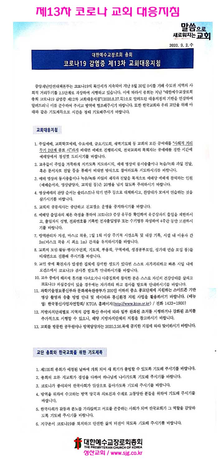 제13차 코로나19 교회 대응지침 안내 페이지 정보 작성자 최고관리자 작성일20-09-02 20:51 조회1,699회 댓글0건 관련링크 이전글 다음글 목록 글쓰기 본문 SNS공유 댓글목록 등록된 댓글이 없습니다. 이전글 다음글 목록 글쓰기