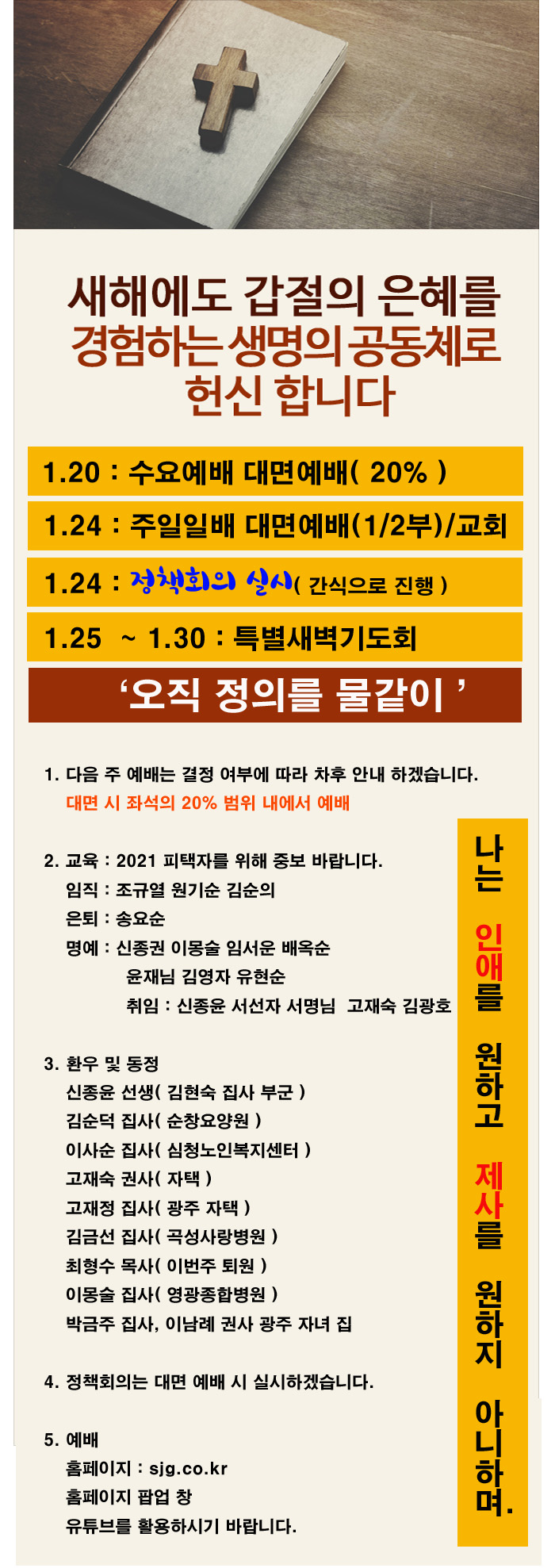 1.24 대면예배 안내 페이지 정보 작성자 최고관리자 작성일21-01-20 13:18 조회1,758회 댓글0건 관련링크 이전글 다음글 목록 글쓰기 본문 SNS공유 댓글목록 등록된 댓글이 없습니다. 이전글 다음글 목록 글쓰기