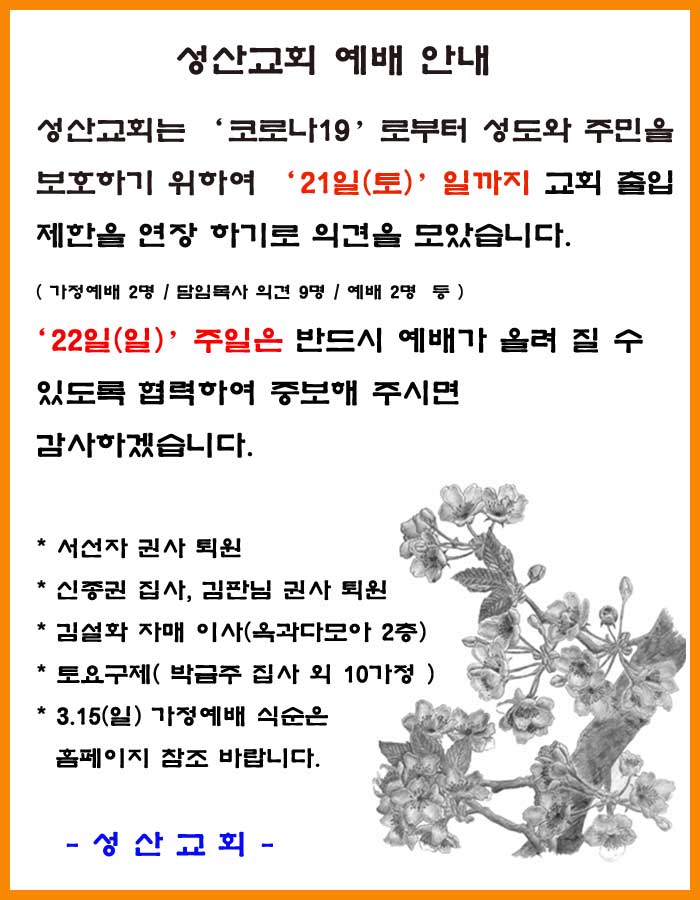성산교회 예배 안내(연장) 페이지 정보 작성자 수정 작성일20-03-14 21:50 조회1,836회 댓글0건 관련링크 이전글 다음글 수정 삭제 목록 글쓰기 본문 . SNS공유 댓글목록 등록된 댓글이 없습니다. 이전글 다음글 수정 삭제 목록 글쓰기