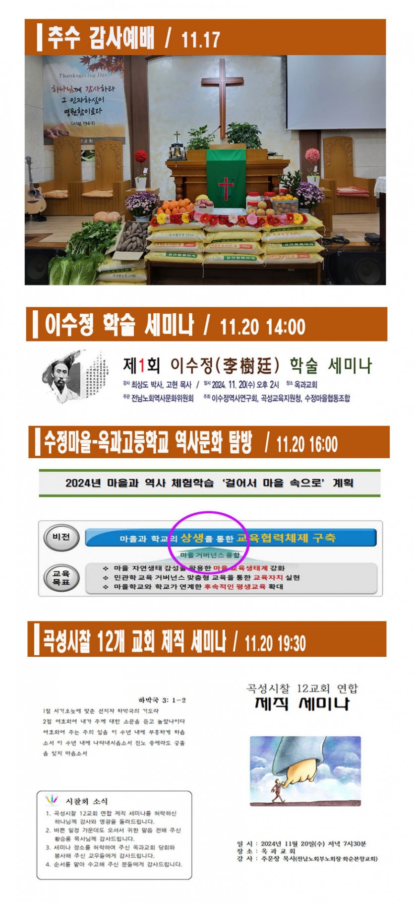 공지 | 11.17 예배 페이지 정보 작성자 최고관리자 작성일24-11-16 21:45 조회905회 댓글0건 관련링크 이전글 다음글 목록 글쓰기 본문 내일 예배는 추수 감사예배입니다. '정결한 마음'으로 나아오시기를 기도합니다. 그리고 11.20일(수)일은 *이수정 학술세미나 *수정마을-옥과고 역사문화 탐방 *제직세미나가 개최됩니다. 성도님의 관심과 사랑으로 원활히 진행될 수 있도록 섬겨주시면 감사하겠습니다. 오주현 목사 드림, SNS공유 댓글목록 등록된 댓글이 없습니다. 이전글 다음글 목록 글쓰기