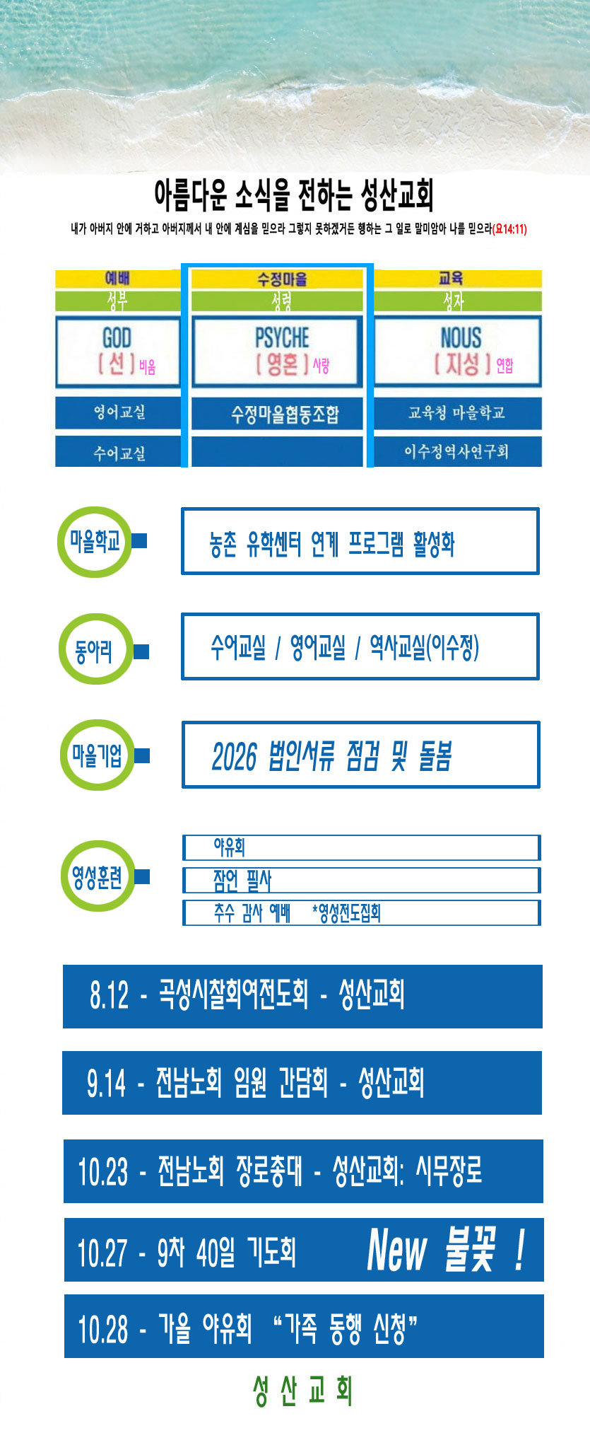 공지 | 8.3 예배 페이지 정보 작성자 최고관리자 작성일25-08-02 20:28 조회473회 댓글0건 관련링크 이전글 다음글 목록 글쓰기 본문 * SNS공유 댓글목록 등록된 댓글이 없습니다. 이전글 다음글 목록 글쓰기